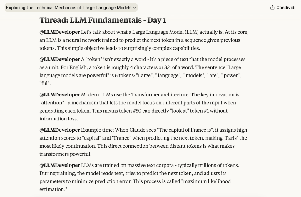 I began to wonder if I could learn something new in that same format. So, I asked Claude to create Twitter/X threads on certain topics. I started by trying to learn about large language models. Every day, I would receive 20 tweets about large language models.