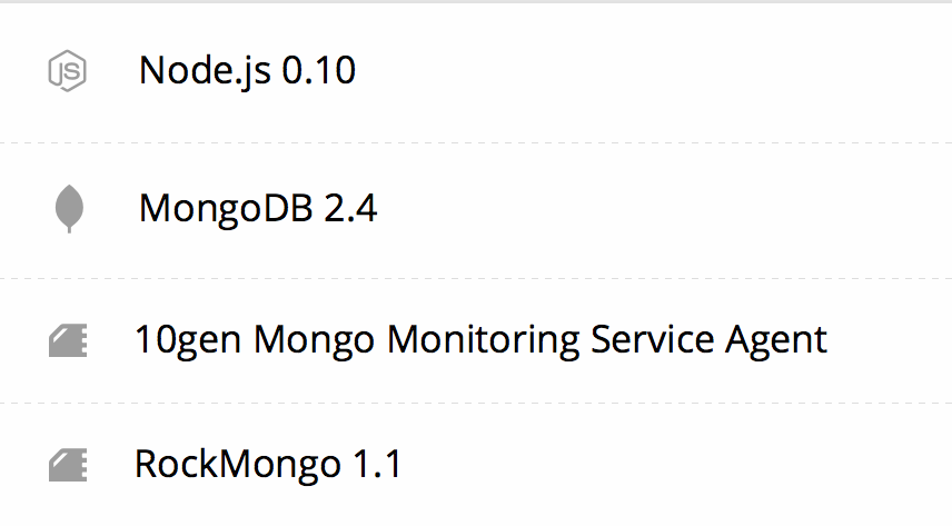 I also decided to add the RockMongo cartridge to have some kind of phpmyadmin, and the Mongo Monitoring Service Agent.